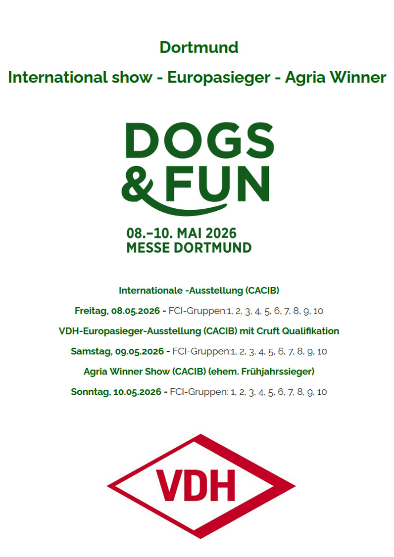 Triple CACIB Internationale Ausstellung/VDH-Europasieger/Frühjahssieger Show, Dortmund | 08.-10.05.2026