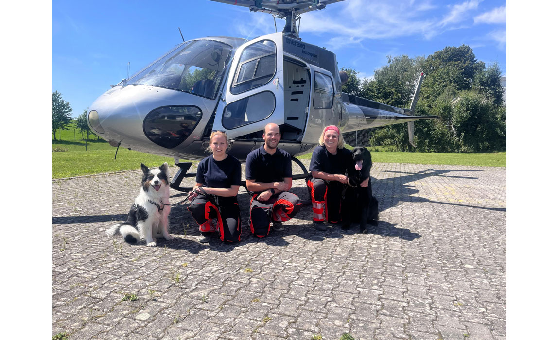 Im August 2025 nahmen wir außerdem erfolgreich an einem Helikoptertraining des Deutschen Rettungshundeverbandes in Bayern mit zwei weiteren Mitgliedern unserer Rettungshundestaffel aus dem Ruhrgebiet teil, eine tolle Sache, die D’ACCORD und mich in der Entwicklung und Zusammenarbeit als Team ein riesiges Stück weitergebracht hat.