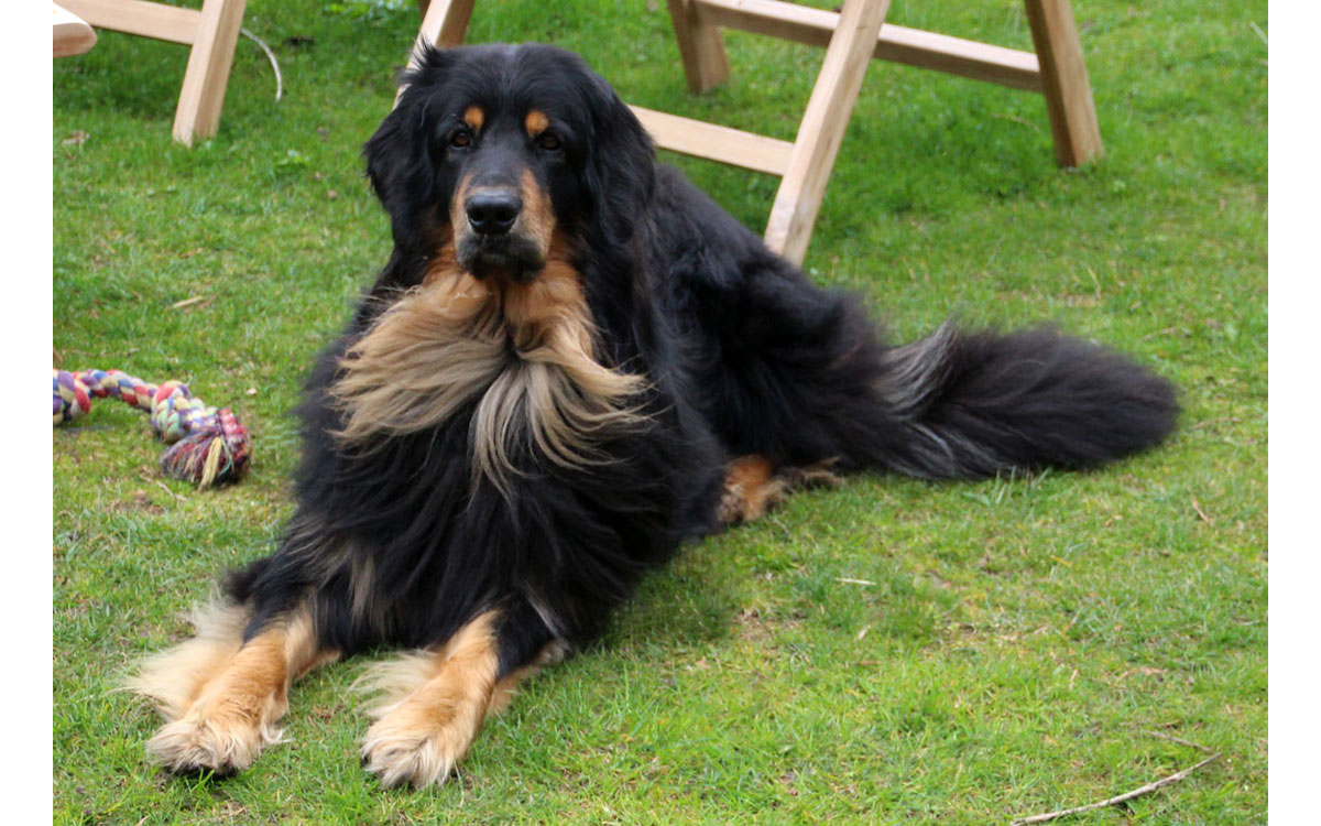 Ernie vom Nymphensee, genannt Jussi, ist ein großer, knochenstarker, sehr imposanter Rüde mit ausgeprägtem Spieltrieb, sehr sozial mit anderen Menschen und Hunden, der seine feine Nase mit goßer Begeisterung beim Trailen zeigt und die Rasse Hovawart prima vertritt.