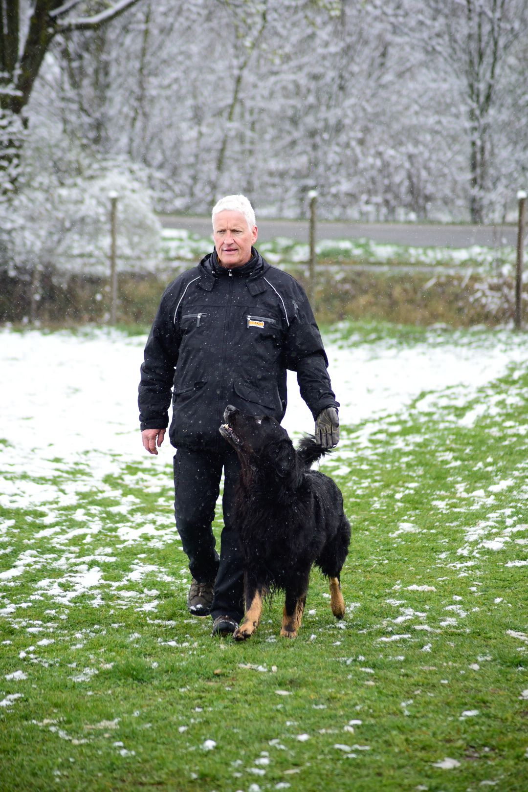 Zurück auf dem Hundeplatz starteten die 2 Begleithunde nach einem leckeren Mittagessen in der Unterordnung. Andreas Kloppholz mit seinem Ringo aus dem Emsland und Ilka Berger mit Chikondi von der Ordensburg meisterten trotz permantem Schneefall die Prüfung sicher und durften ihre Hunde im Verkehrteil vorstellen. Anschließend absolvierten die IGP Hunde souverän ihre Unterordnung. In der IBGH 2, erhielt Sylvia Herrmann mit ihrem Kalevi aus der Grauzone gute 85 Punkte.