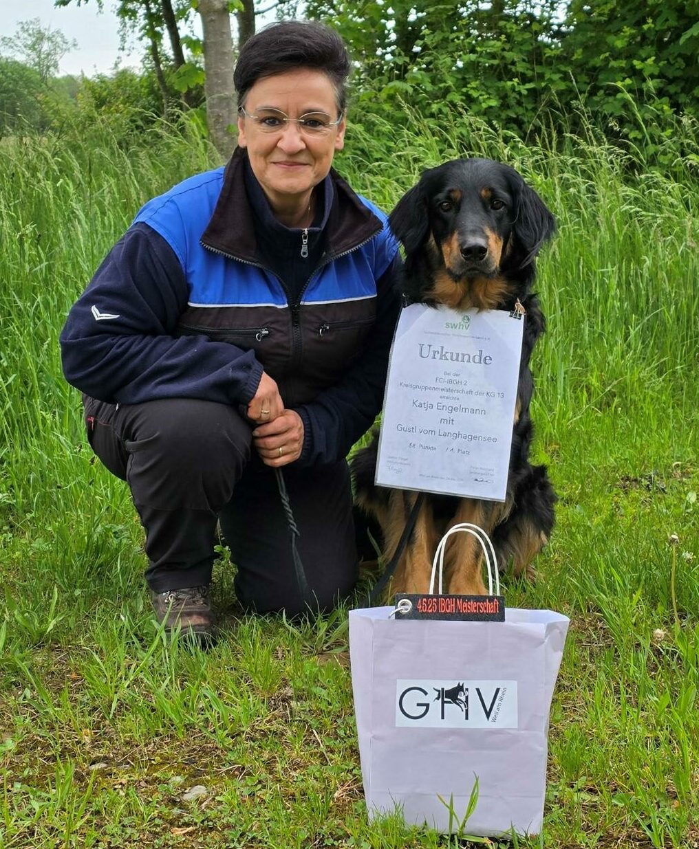 Ute Weiß mit Beele vom Schwanenholtz, FCI-IBGH 2 / 77 Punkte / bfr.