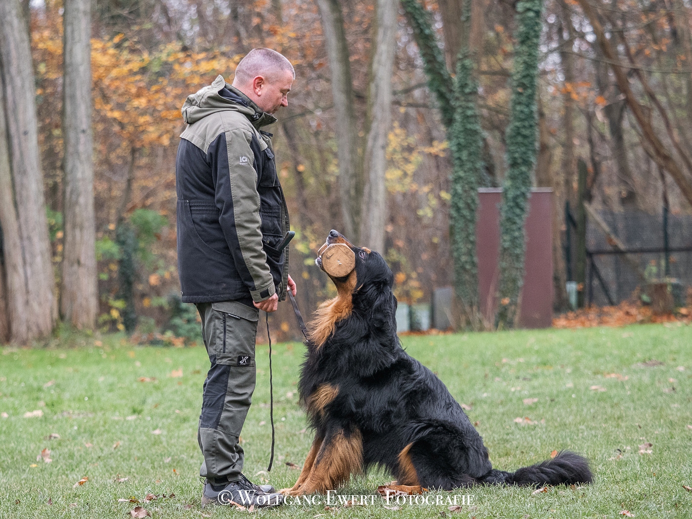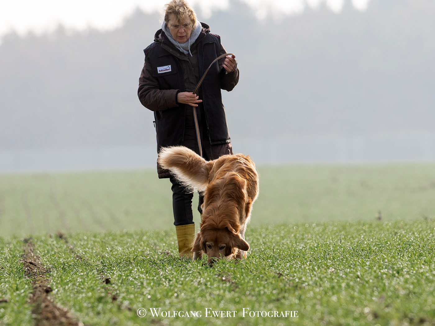 Der Ablauf ist in bewährter Weise festgelegt: täglich folgt nach der Arbeit im Fährtengelände das Training auf dem Hundeplatz. Zunächst in der Unterordnung, später im Schutzdienst.