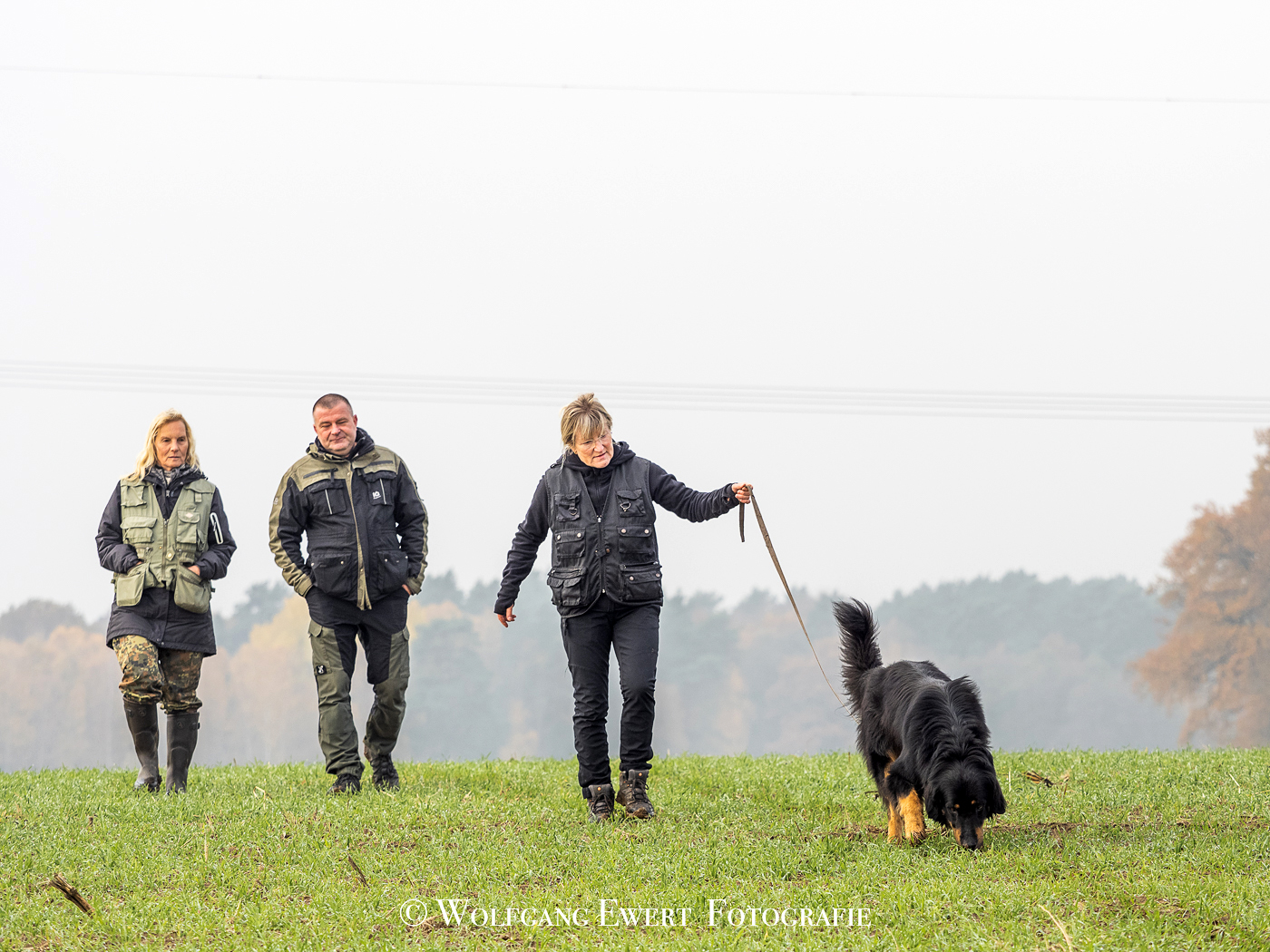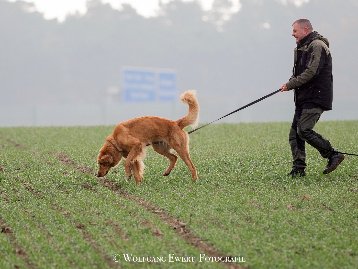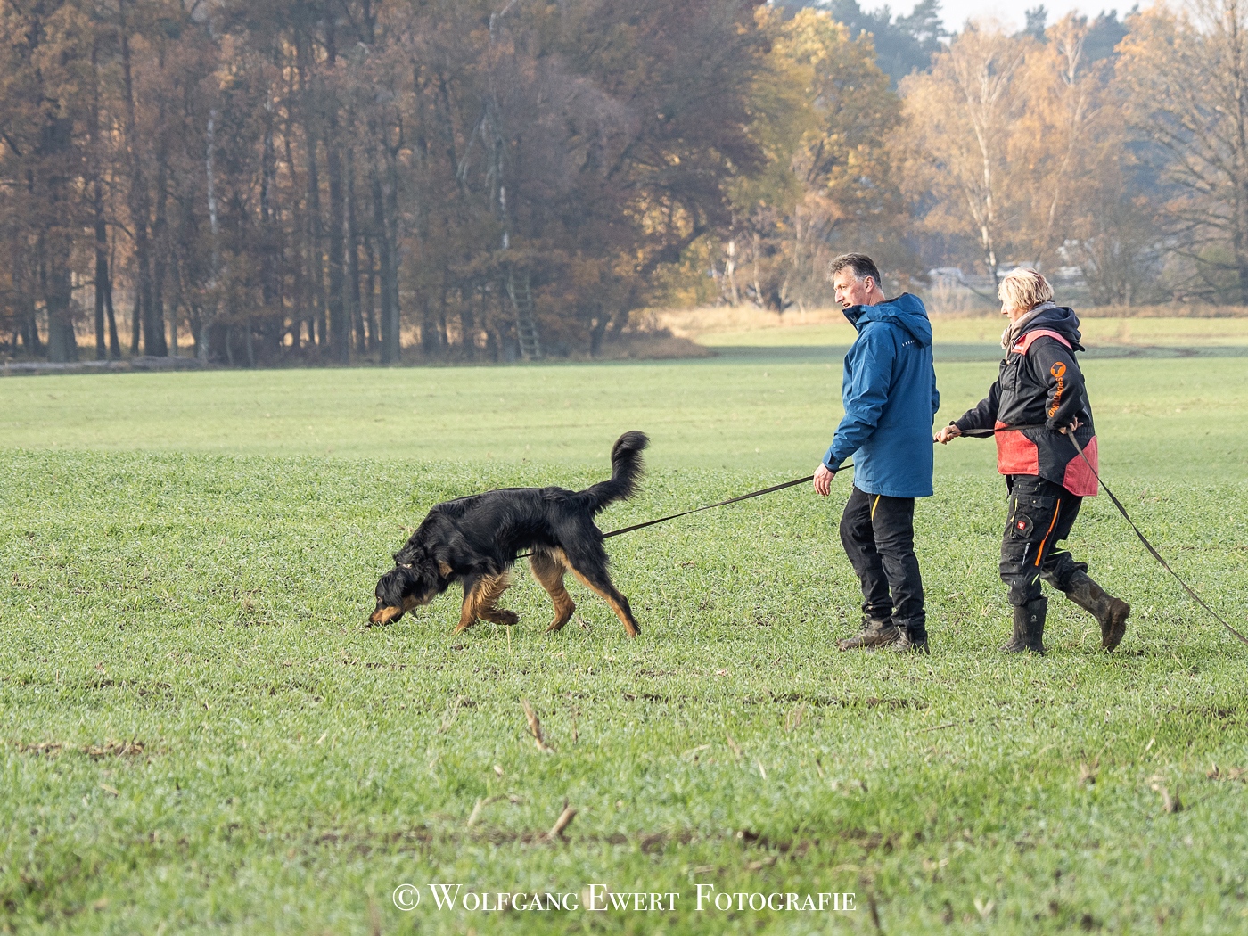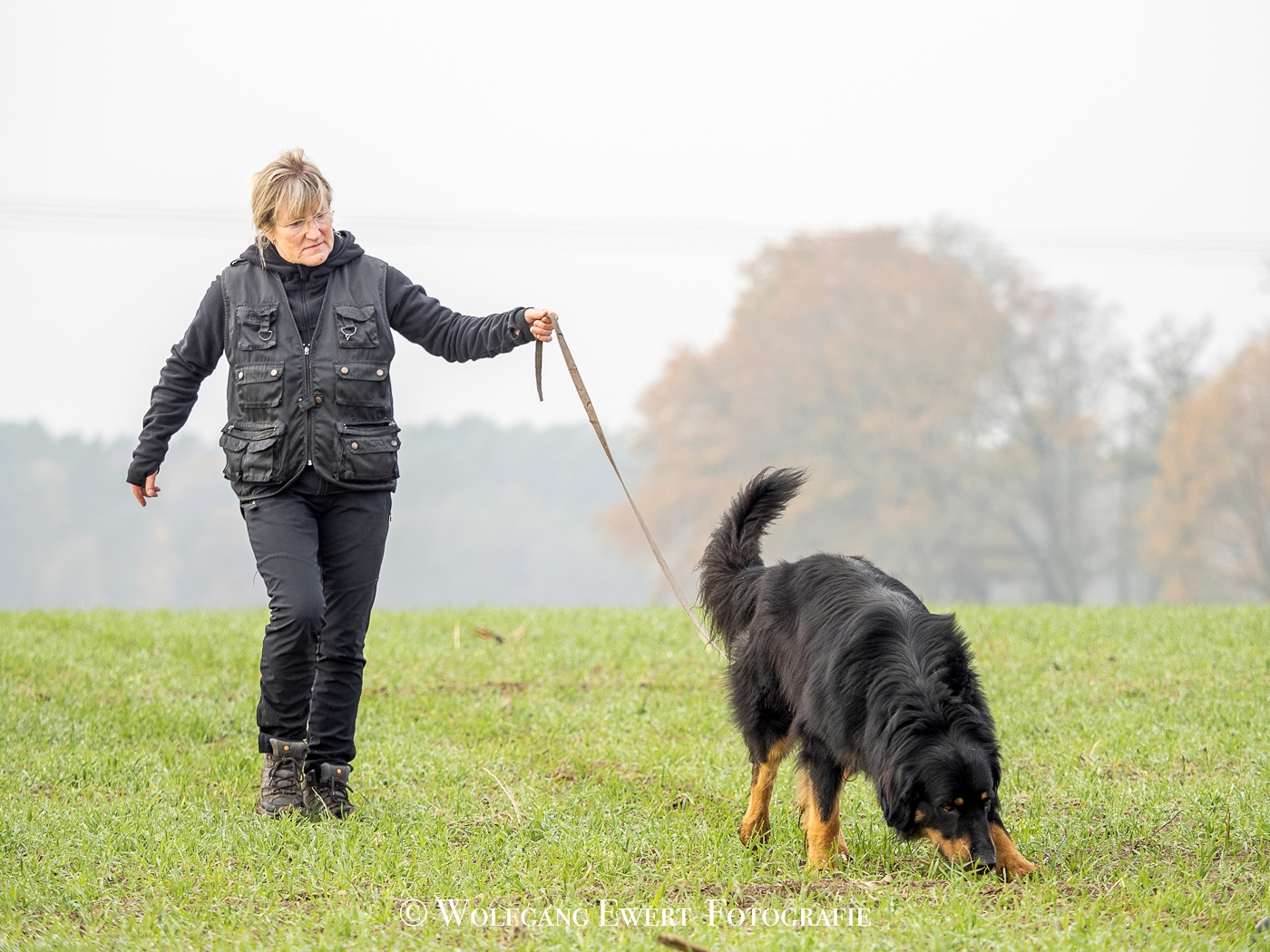 Am darauf folgendem Morgen fanden sich alle Teilnehmer, bestehend aus 16 Mensch-Hunde-Teams, eingeteilt in zwei Gruppen, auf dem Fährtengelände ein. Die Freude des Wiedersehens war immens. Ob aus Schleswig-Holstein, Niedersachsen, Sachsen, Bayern, aus Polen oder ganz aus der Nähe Berlins und Brandenburgs: zwei mal im Jahr treffen sich alle um die beiden Trainer Steffen Herrmann und Matthias Kock, um Hund und Mensch im Fährten – und im IGP-Bereich zu trainieren und auf bevorstehende Prüfungen vorzubereiten.