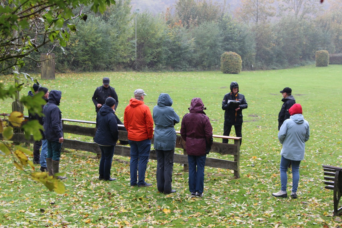 Im Anschluss ging´s erst mal zum Vereinsheim, zum Aufwärmen und Trockenlegen. Hier begrüßten die Prüfungsleiterin Elke Loof und der 1. Vorsitzende Michael Wobser auch die übrigen Hundeführer/-innen, den Leistungsrichter und Gäste, und Robert Brathe und Cord Kleingarn absolvierten erfolgreich ihren Sachkundenachweis.