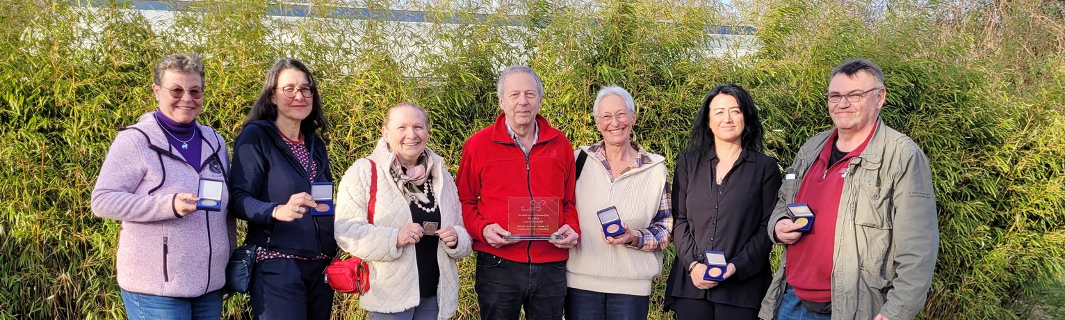 Für 40-jährige Mitgliedschaft mit Ehrengabe in Gold wurden Karl Ludwig Fahnle, Liane Sandbihler, Marguy Toussaint und Thomas Meissner mit der Ehrengabe in Gold ausgezeichnet.
