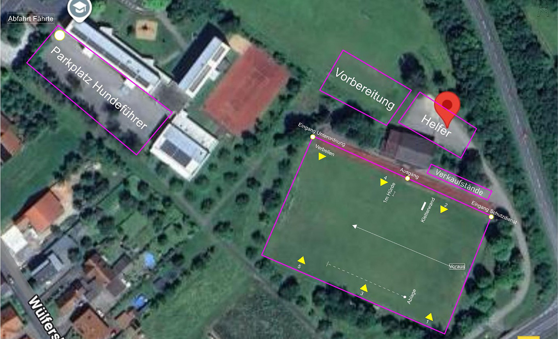 Auf dem gesamten Gelände besteht Leinenpflicht. Bitte entsorgen Sie die Hinterlassenschaften ihres Hundes in den dafür bereitgestellten Behältnissen. Gasthunde bitten wir möglichst zu Hause zu lassen. Falls Sie doch mit ihrem Hund anreisen, bitte den Impfpass nicht vergessen. Wir bitten Sie jedoch, den Hund während der Prüfungen nicht mit auf das Sportplatzgelände zu nehmen.