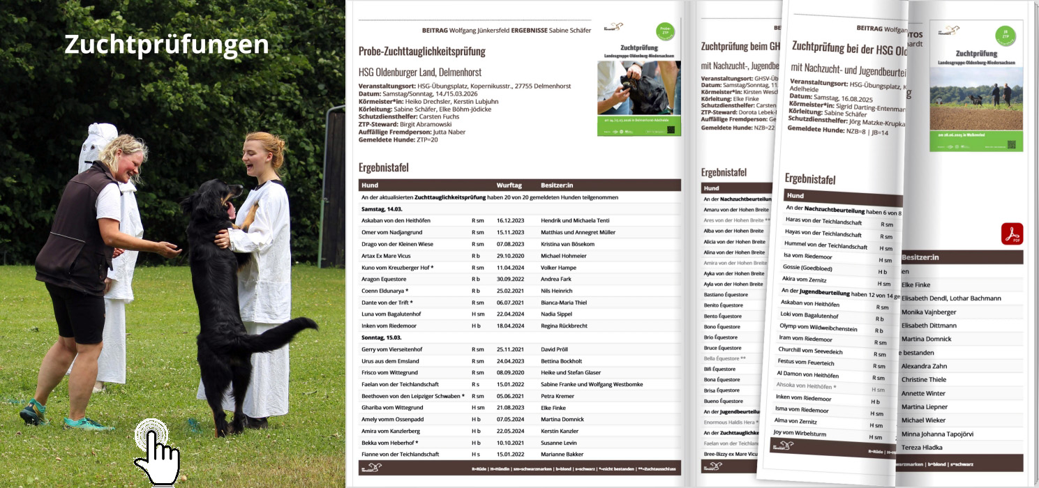 Die Termine werden fortlaufend aktualisiert. Alle Ergebnisse finden Sie im OLNDS Event-Tagebuch und im Zuchtprüfungen-FlipBook.