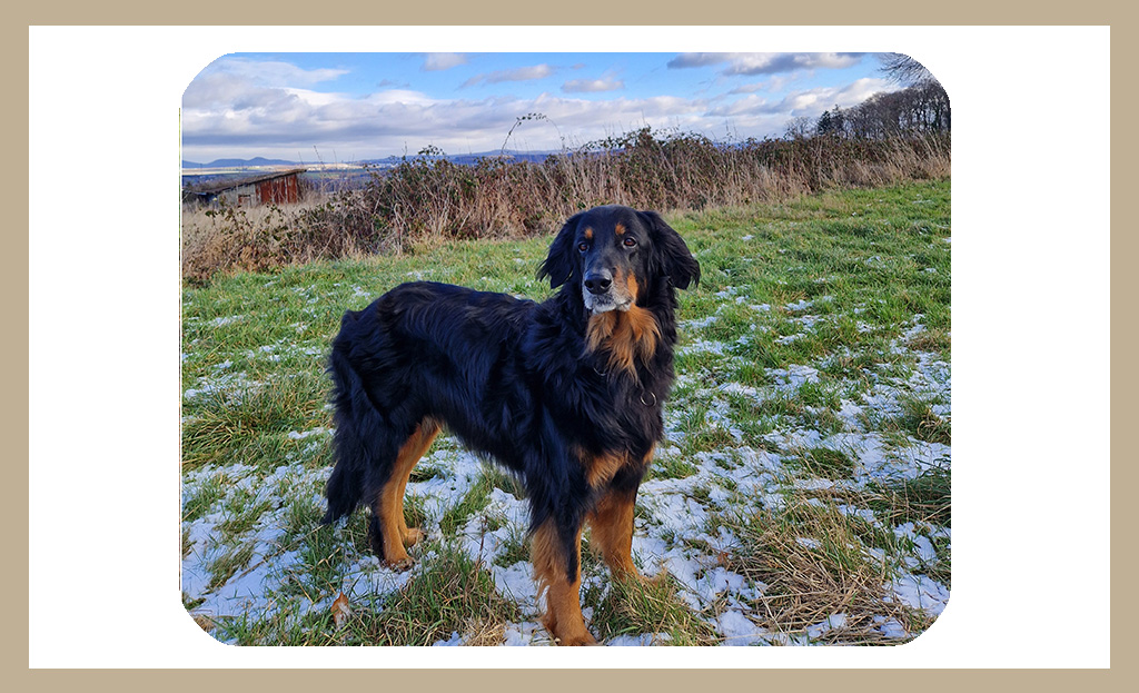 Wir sind glücklich, dass sie jetzt 13 Jahre bei uns ist, und wünschen uns mit ihr noch so manche Runde durch Felder und Wiesen und viele gemeinsame Kuschelmomente!