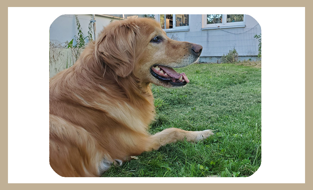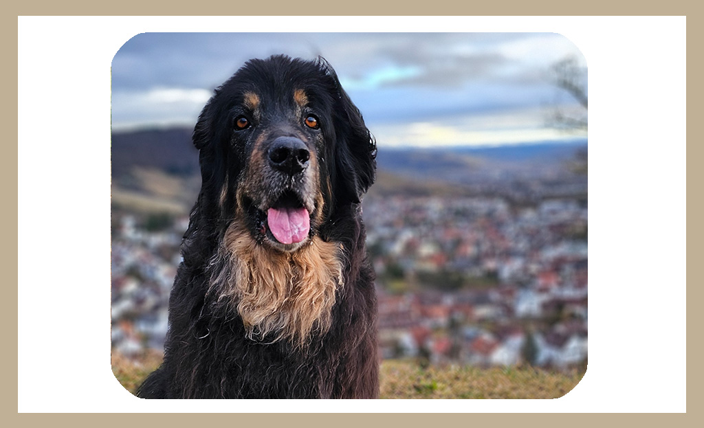 Du hast die Kinder aufwachsen sehen, warst immer ihr Freund, Beschützer und Spielkamerad. Dein großes Herz schlägt für unser Rudel – und dafür, uns alle zusammenzuhalten. Du warst fürsorglicher Babysitter für einen kleinen Hovi mit Betreuungsproblem und irgendwann auch geduldiger Katzenfreund.