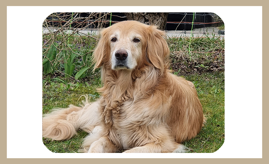 Fritzi wurde am 17.02.2010 bei uns geboren. Nun wird sie 16 Jahre alt. Sie nimmt immer noch einen wichtigen Platz im Rudel ein und besteht darauf, mehrmals täglich ihren Lieblingsball zu apportieren. Sie liebt das Beutespiel und kleine Trainingseinheiten. Ihre leichte Demenz bringt uns täglich zum Schmunzeln. Ihr herzhafter Sprung von der vorletzten Stufe in den Garten endet manchmal mit einer Bruchlandung. Das vergisst sie aber gleich wieder. Fritzi war in ihrem langen Leben noch nie krank. Unsere Tierärztin kennt Fritzi nur vom Impfen. Ich hoffe sehr, dass sie noch ein wenig bleiben darf.