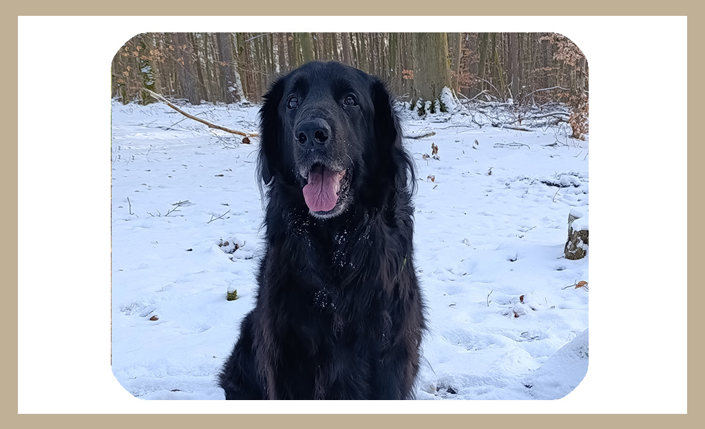 Die vielen ausgedehnten Spaziergänge – mit Dir wurden sie nie langweilig. Du liebtest alle Jahreszeiten, den Frühling mit den blühenden Obstbäumen hinter unserem Haus, den Sommer, den Du glücklich und zufrieden unter dem kühlen Bambus auf der Terrasse genossen hast, den Herbst mit seinen Blätterbergen, in denen Du nach vergrabenen Schätzen suchtest. Und schließlich den Winter und den Schnee, der die Welt verzauberte. Pfützen, die sich in Rutschbahnen verwandelten, Abhänge, die man hinunterkugeln konnte, Schneebälle, die Du mit Luftsprüngen auffingst, und einmal der Autoschlüssel, den du unter der weißen Decke aufspürtest. Kein Problem bei Deiner feinen Nase.